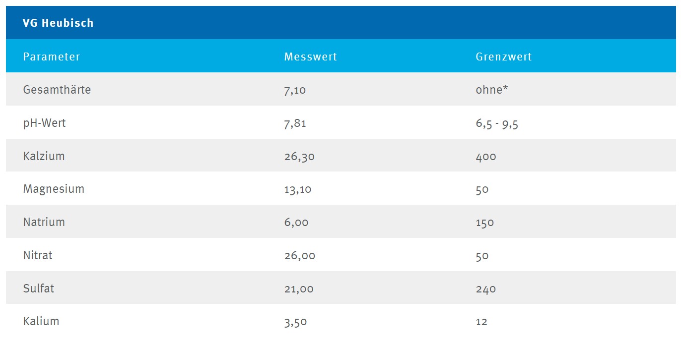 Messwerte des Trinkwassers im Raum Heubisch (Stand: 2021)